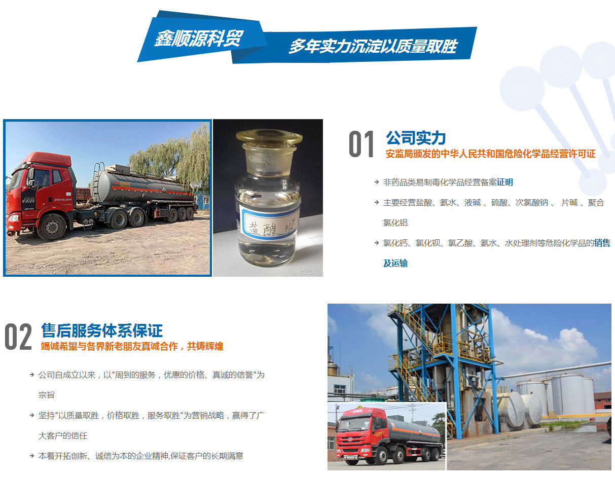 晉中市鑫順源科貿(mào)有限公司成立于2012年9月4日,有安監(jiān)局頒發(fā)的中華人民共和國(guó)危險(xiǎn)化學(xué)品經(jīng)營(yíng)許可證和非藥品類(lèi)易制毒化學(xué)品經(jīng)營(yíng)備案證明,主要經(jīng)營(yíng)鹽酸、氨水、液堿 、硫酸、次氯酸鈉 、 片堿 、純堿 、聚合氯化鋁、氯化鈣、氯化鋇、氯乙酸、氨水、水處理劑等危險(xiǎn)化學(xué)品的銷(xiāo)售及運(yùn)輸。...